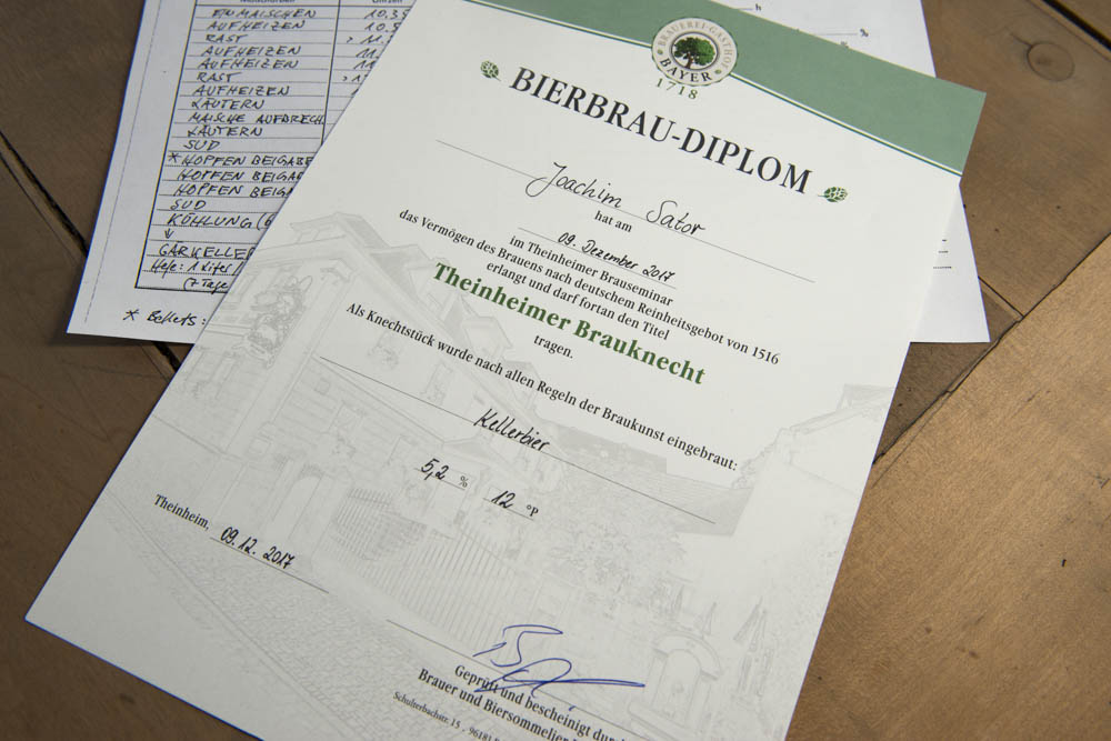 Jeder Teilnehmer erhält eine Urkunde und nach 4 wöchiger Reifzeit sein Bier in einem 5-Literfass.